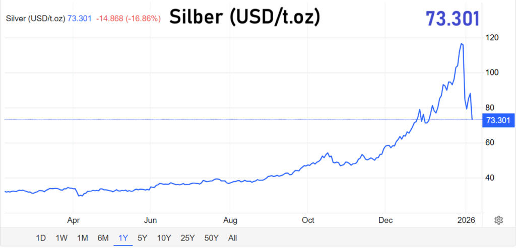Hinzu kommt: Silber wird sowohl als Edelmetall als auch als Industriemetall wahrgenommen. Preisbewegungen können daher unterschiedlich gelesen werden – als Signal für Risikoaversion oder als Hinweis auf Sorgen zur Konjunktur. Wenn die Marktinterpretationen auseinanderlaufen, erhöht das die Unsicherheit und verstärkt die Schwankungen.
