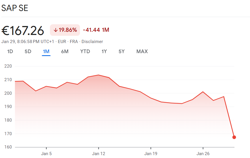 Im Dax stand vor allem SAP im Fokus. Die Aktien des größten europäischen Softwarekonzerns verloren 16,1 Prozent und waren damit klarer Tagesverlierer. Das Unternehmen stellte für das laufende Jahr eine erneute Abschwächung beim Wachstum der Cloud-Auftragseingänge in Aussicht. Im vergangenen Geschäftsjahr belief sich das Volumen neuer Cloud-Verträge auf 21 Milliarden Euro und blieb damit unter den Erwartungen vieler Analysten. Diese Prognose traf den Markt unvorbereitet und löste massive Verkäufe aus.