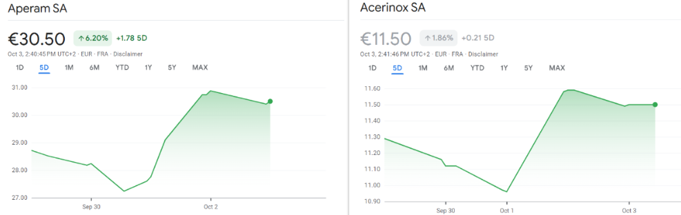 Nicht nur Salzgitter profitierte von der positiven Stimmung. Die finnische Outokumpu legte um 6,1 Prozent zu, Thyssenkrupp verzeichnete ein Plus von 6,2 Prozent. Auch die Aktien von Acerinox aus Spanien und Aperam aus Luxemburg konnten sich verbessern, beide stiegen jeweils um mehr als zwei Prozent.