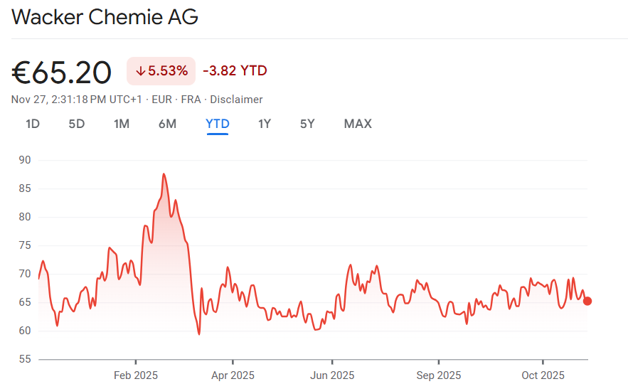 Der internationale Wettbewerb im Bereich der chemischen Vorprodukte, Halbleitermaterialien und Prozesschemikalien hat sich zuletzt weiter verschärft. Hersteller in Asien und Nordamerika produzieren häufig zu deutlich niedrigeren Energiekosten, was sich unmittelbar in günstigeren Preisen niederschlägt. Für Wacker, das strategisch wichtige Rohstoffe für die globale Chipfertigung herstellt, wird der Kostendruck somit jederzeit spürbar.