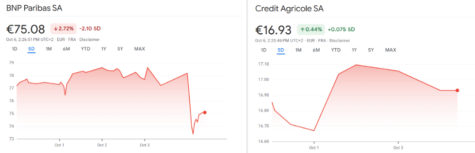 An der Pariser Börse herrschte Panikstimmung. Der CAC-40-Index fiel um 1,5 Prozent und gehörte damit zu den schwächsten europäischen Leitindizes. Besonders hart traf es die Bankenbranche: Die Aktien von Société Générale brachen um 6,7 Prozent ein, BNP Paribas verlor 3,4 Prozent, und Crédit Agricole gab 2,9 Prozent nach.