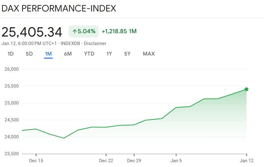 Der deutsche Aktienmarkt zeigt sich auch nach dem fulminanten Jahresauftakt weiter erstaunlich widerstandsfähig. Trotz der Eskalation im Iran und der zunehmenden politischen Spannungen in den USA zwischen US-Präsident Donald Trump und Fed-Chef Jerome Powell hielten sich die Belastungen für den Markt in Grenzen. Der Dax kletterte im Tagesverlauf erneut auf ein Allzeithoch und schob seine Bestmarke auf 25.421,42 Punkte nach oben.