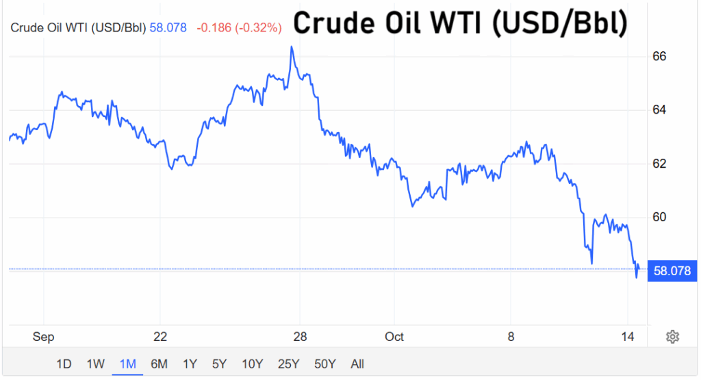 Dieser Überhang lässt die Preise rutschen: WTI fiel zuletzt auf 58,20 US-Dollar je Barrel, während Brent bei 61,70 US-Dollar notierte. Beide Sorten haben damit den niedrigsten Stand seit rund fünf Monaten erreicht.