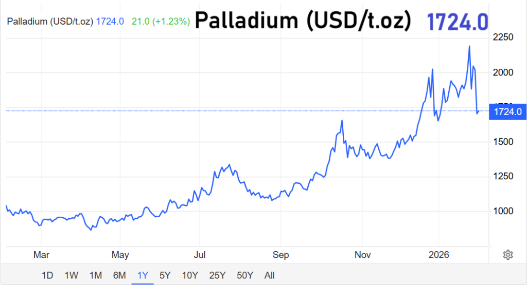 Nicht nur Gold und Silber waren von der Korrektur betroffen. Auch Platin und Palladium, die häufig als preisgünstigere Alternativen zu Gold angesehen werden, verloren deutlich an Wert. Die Abgaben zeigten, dass es sich um eine breit angelegte Bewegung handelte und nicht um eine isolierte Schwäche einzelner Metalle.